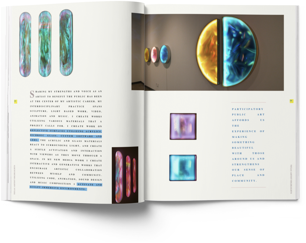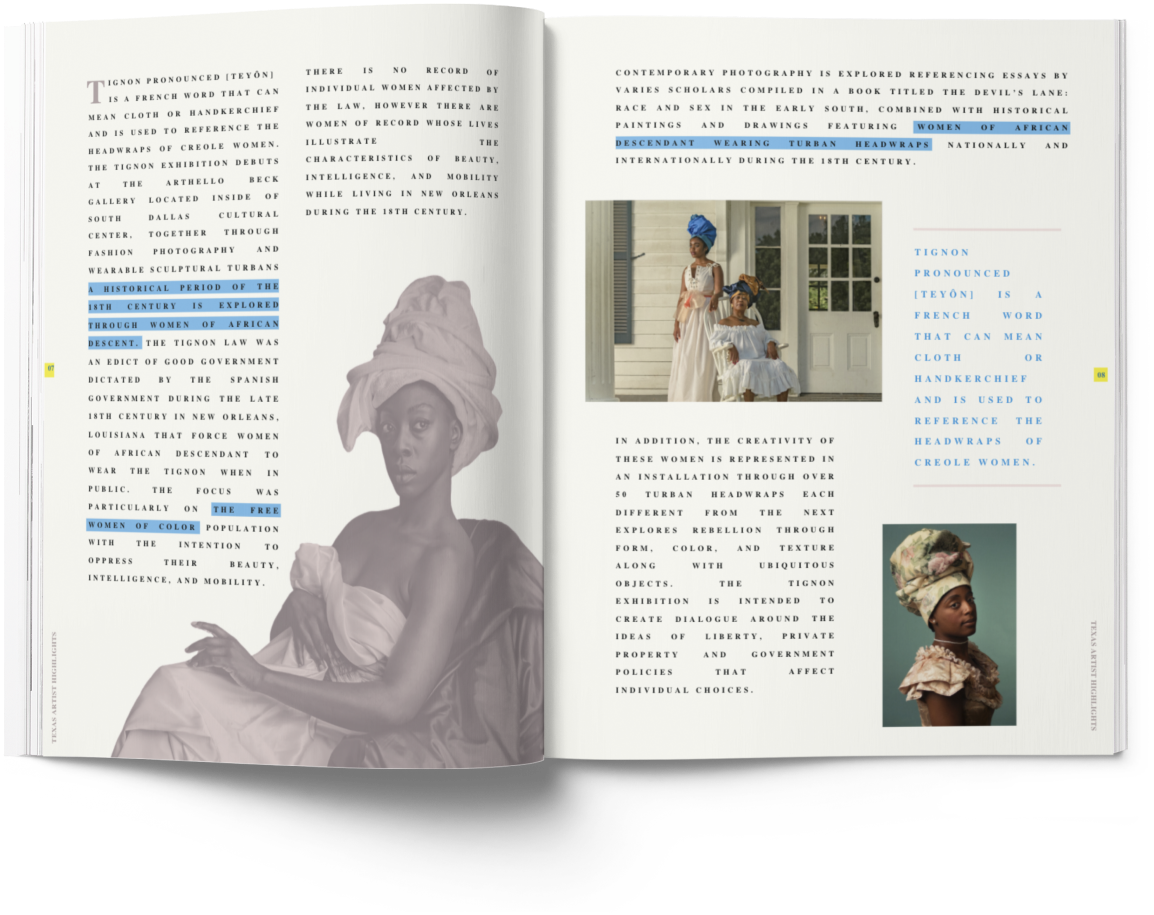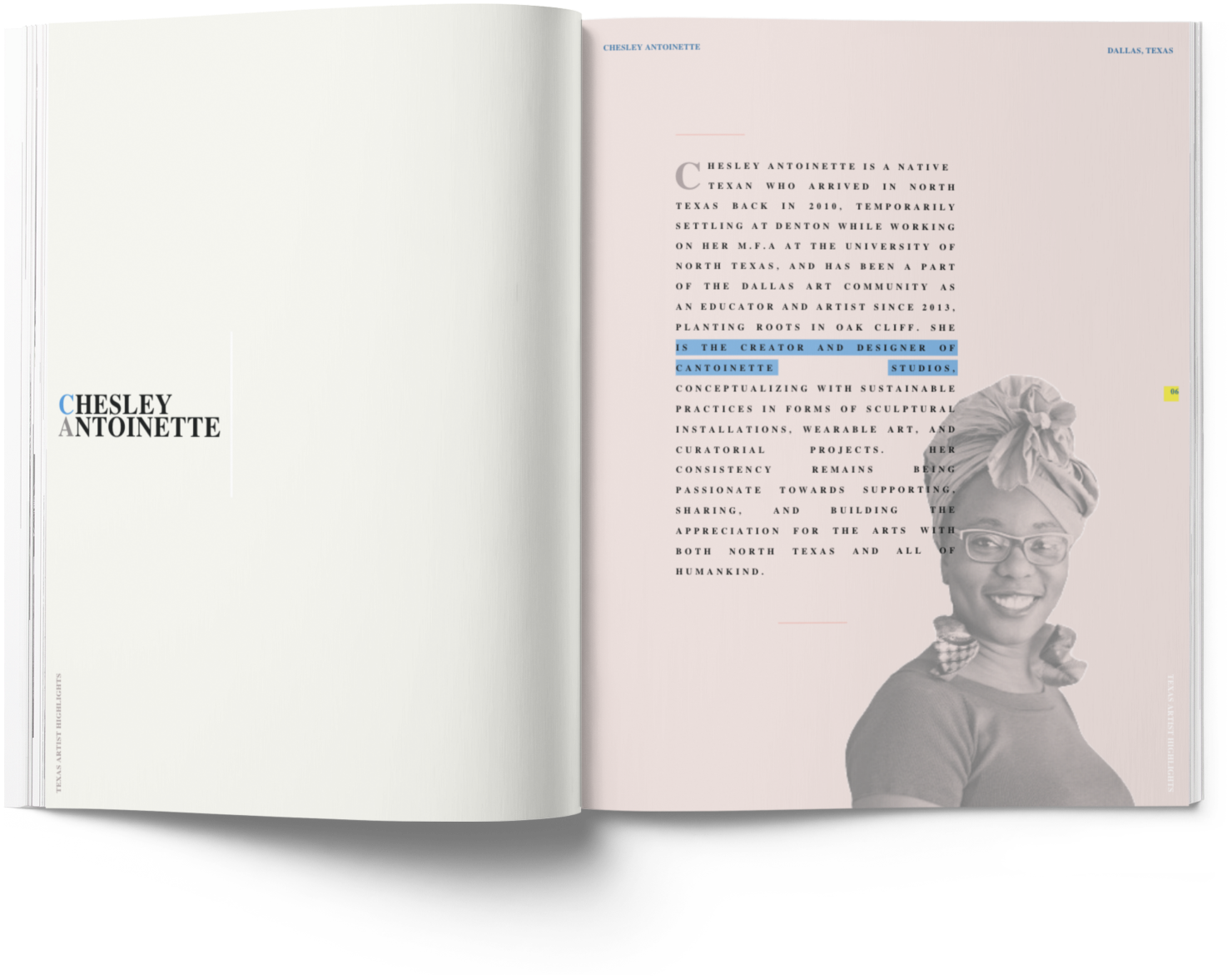 Publication design and social content production for Texas-based nonprofit supporting female artists.